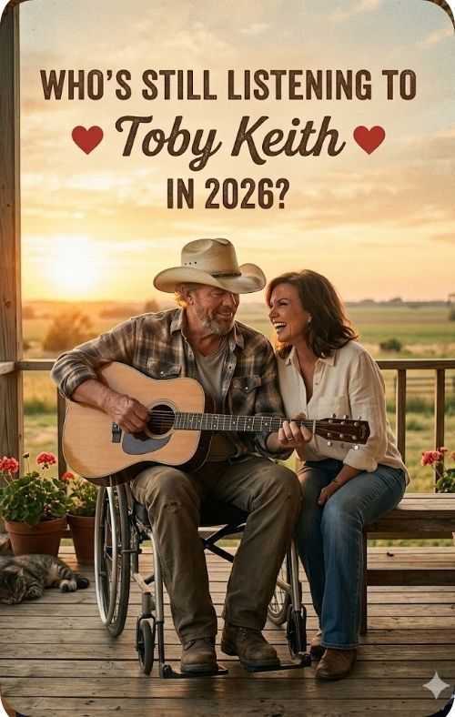 The image described here does not present a man fading into memory. It presents a man still attached to the one thing that had always allowed him to speak clearly to the world: the guitar in his hands, and the songs that came through it. That matters. Because Toby Keith built his career not on mystery or distance, but on directness. His music often sounded like it came from front porches, highways, military bases, and small-town gatherings where people carried pride not as performance, but as part of daily life. He understood how to give voice to working people who rarely saw themselves treated with dignity in polished cultural narratives. He sang for them without apology.