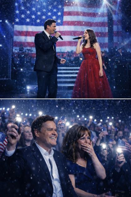 And for Donny, sitting there in silence, the message was unmistakable: the voice that once introduced him to the world had now become a foundation for others. The crowd wasn’t witnessing a retirement or a farewell. They were witnessing the rarest thing in entertainment—a legend letting the future sing, while he listened like a proud father, and like a man finally hearing his own life returned to him in harmony.