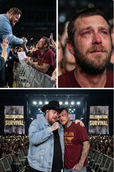 But this is where the music matters. Because a voice like Jelly Roll’s—an artist who has built his reputation on raw honesty and second chances—doesn’t just sing about pain. He recognizes it. The folded paper isn’t just an object; it’s a symbol. It might be an apology, a confession, a goodbye, a plea, or a thank-you that someone carried for years and finally found the courage to deliver. And when the crowd holds its breath, the artist’s response becomes the real message of the night.