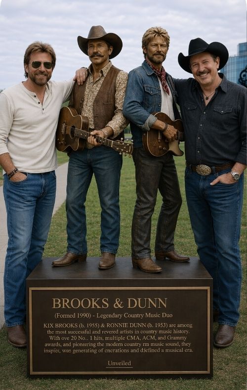 In the end, “Cast in Bronze, Echoing Forever: The Untold Power Behind Brooks & Dunn’s Historic Honor” is such a powerful phrase because it captures something permanent. This was not merely a celebration of fame. It was the public recognition of a legacy that had already become part of American musical identity. Records can age. Stages can empty. Even memories can soften around the edges. But some artists leave a mark so deep that culture itself must find a way to preserve it. Brooks & Dunn earned that kind of permanence. And in bronze, at last, the wider world simply caught up with what country fans had known for years: their echo was always going to last.