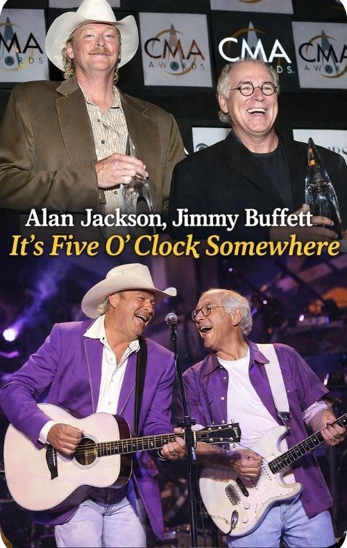 Some songs do not ask to be overanalyzed, yet they reward reflection all the same. They arrive with an easygoing spirit, a familiar melody, and a sense of relief so immediate that listeners feel understood before the first chorus is over. Alan Jackson, Jimmy Buffett – It’s Five O’ Clock Somewhere is one of those rare songs. On the surface, it sounds relaxed, playful, and effortlessly charming. But beneath that breezy exterior lies something deeper that helps explain why it became such a lasting favorite, especially for listeners who appreciate music that knows how to carry wit, weariness, and wisdom in the same breath.