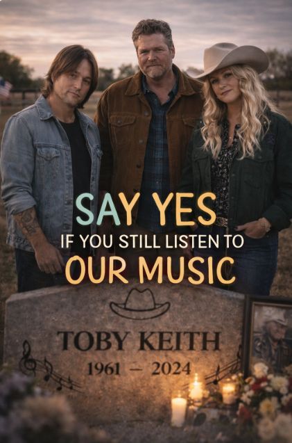 There are some moments in country music that feel larger than performance. They rise above the noise of headlines, beyond the glitter of award shows, and settle into something deeper—something personal, human, and almost sacred. “No Stage, No Applause — The Night Blake Shelton, Keith Urban, and Miranda Lambert Sang Goodbye to Toby Keith in Silence” is one of those moments. It is not simply a scene built around famous names. It is the kind of image that stays with you because it reminds us what music means when the spotlight is gone and only memory remains.