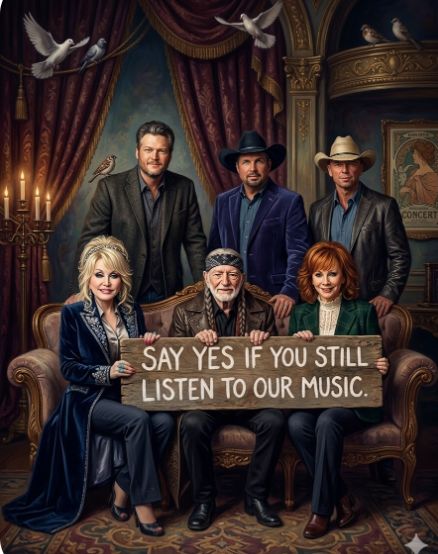 There are certain moments in music that feel larger than applause. They rise above the ordinary mechanics of performance and settle somewhere deeper, in that quiet place where memory, heritage, and identity meet. The imagined Nashville gathering behind SIX LEGENDS. ONE VOICE. THE NIGHT COUNTRY ROYALTY SPOKE AS ONE AND PROMISED TO PROTECT THE SOUL OF AMERICAN MUSIC 🎶🇺🇸 belongs to that rare category. It is the kind of scene that instantly captures the imagination of anyone who has ever loved country music not merely as entertainment, but as a living record of American life.