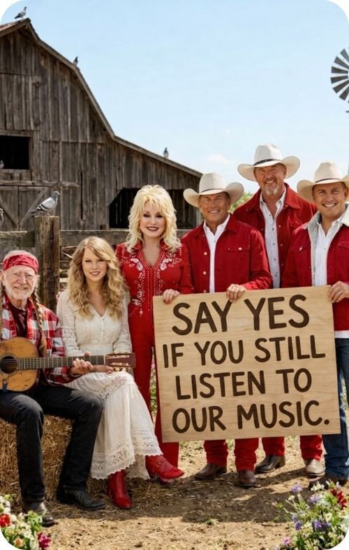At first glance, the image alone is enough to stop anyone in their tracks. Dolly Parton. Reba McEntire. George Strait. Trace Adkins. Willie Nelson. Taylor Swift. Six names that do not simply belong to country music, but help define its emotional map. They come from different generations, different chapters, and different ideas of what country has been and what it can become. Yet standing together, they seemed less like separate stars and more like a single story finally being told the way it was always meant to be heard.