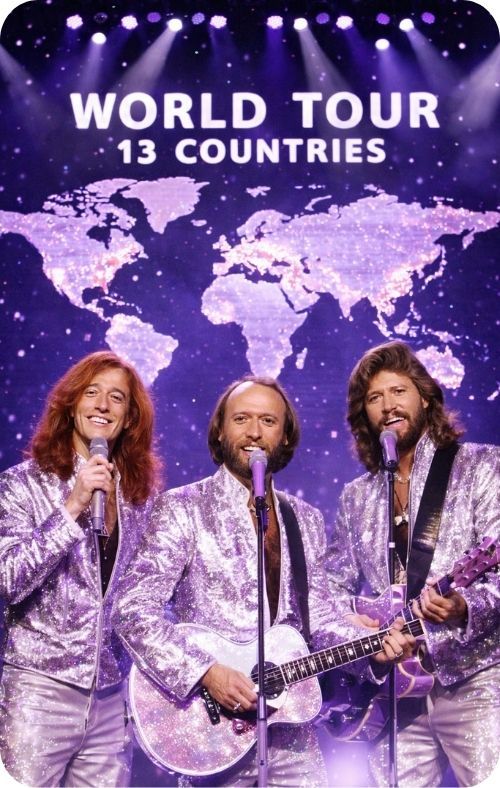 In the end, what makes this phrase so compelling is that it captures the scale of their achievement without diminishing the tenderness of their art. The Bee Gees were global, but never impersonal. They were famous, but never merely fashionable. Their songs crossed borders because they first crossed into the heart. And that is why The Bee Gees’ tour across 13 countries still feels like more than a historical note. It feels like a reminder of a time when music traveled far, carried memory with it, and left listeners in many corners of the world feeling that these three voices somehow belonged to them too.