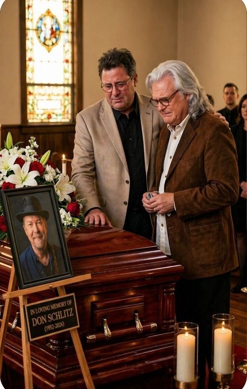 That is why THE FINAL NOTE THAT NO ONE WANTED TO END — As the last chorus of “Go Rest High On That Mountain” echoes through the service, Vince Gill holds the note just a second too long, joined by Ricky Skaggs — as if letting go would make the goodbye permanent — “Go rest high… we’ll carry your song from here.” feels less like a dramatic line and more like an honest description of what music sometimes does at its most powerful. In that final suspended moment, the note becomes more than sound. It becomes resistance. Resistance against finality. Resistance against silence. Resistance against the unbearable fact that a beloved voice, a beloved presence, must now be remembered in the past tense.